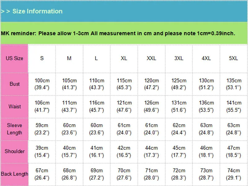 Size Type:Plus Size S M L XL 2XL 3XL 4XL 5XL