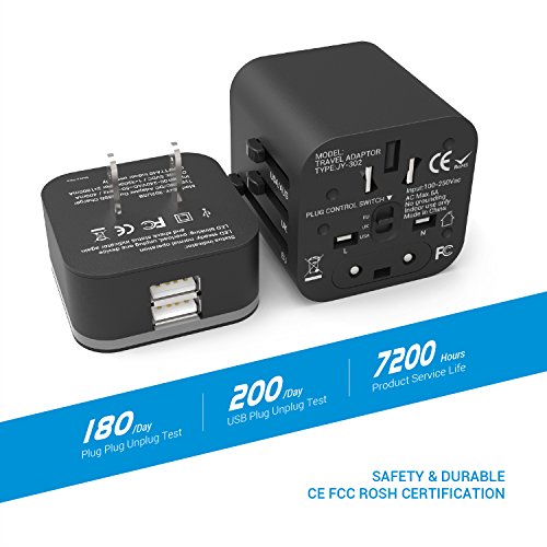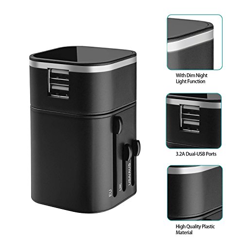 Travel Adapter - Emixc Travel Charger Universal Worldwide All-in-one Wall Charger Plug Safety Built-in 3.2A Dual USB Ports For Home Use-Safety Fuse Protection