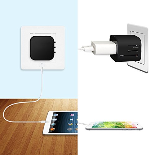 SIMULTANEOUSLY CHARGE 2 DEVICES - Get powered-up faster 50% compared with others without the hassle of multiple chargers and cables. World Adapter Plug is compact, powerful & efficient, it has an all-in-one design, dual USB ports and a universally AC socket.