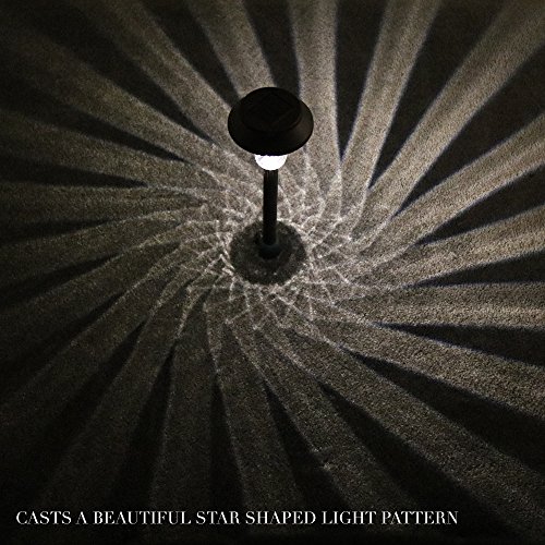 These Real Metal Bronze Solar Path Lights are the perfect solution for adding automatic hassle-free romantic LED lighting to your driveway, walkway, sidewalk, garden, patio or anywhere else outside your home. Our rubbed bronze LED solar lights are made of real metal and designed for outdoor use. They aren't bothered by rain or snow. Our lights feature unique natural white LEDs for beautiful looking light. These rubbed bronze solar lights install in minutes needing no wires or messy trenches. To install, just push stake into soft earth (softened with water if need be). The solar lights then effortlessly recharge during the day and come on at dusk automatically. Even works in cloudy weather. Rechargeable solar batteries are included for all 6 lights and are already installed. Just switch each light "On" prior to installation and place the lights in the ground outside. Each solar light produces the perfect amount of light to illuminate a 4 foot by 4 foot square area. The light pattern is a beautiful star shape design. 100% Satisfaction Guaranteed! Please allow your solar lights to charge 10-12 times before maximum battery capacity will be reached. These lights are 16 inches tall from tip to tip. They are 4.5 inches wide at the widest point. These lights will add extra beauty and enchantment to any home or garden!Feature