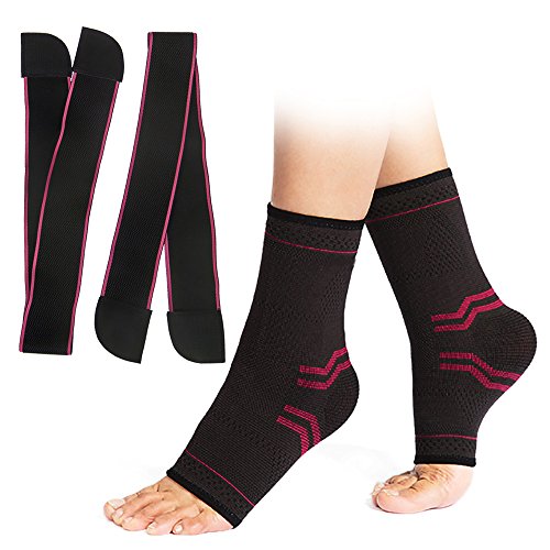 -. Feature : Please take a look on our sizing chart and find the best size according to your shoe size / Our ankle sleeves provide superior support, comfort, and relief without compromising your mobility, ensuring you're a step ahead in injury prevention / Breathable compression knitting fabric maintains joint stability, helps improve blood circulation and eases pain from heel spurs / Quick at absorbing sweat and keeps your feet dry and odor free, gives you hours of continuous use / Adjustable straps can pressure the ankle for a tight fit, please stick it on the strap itself only