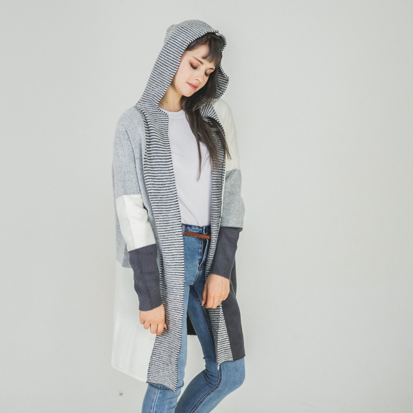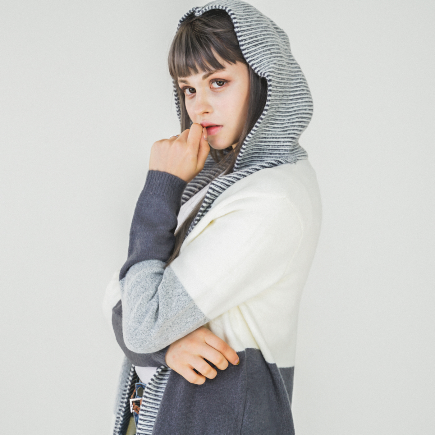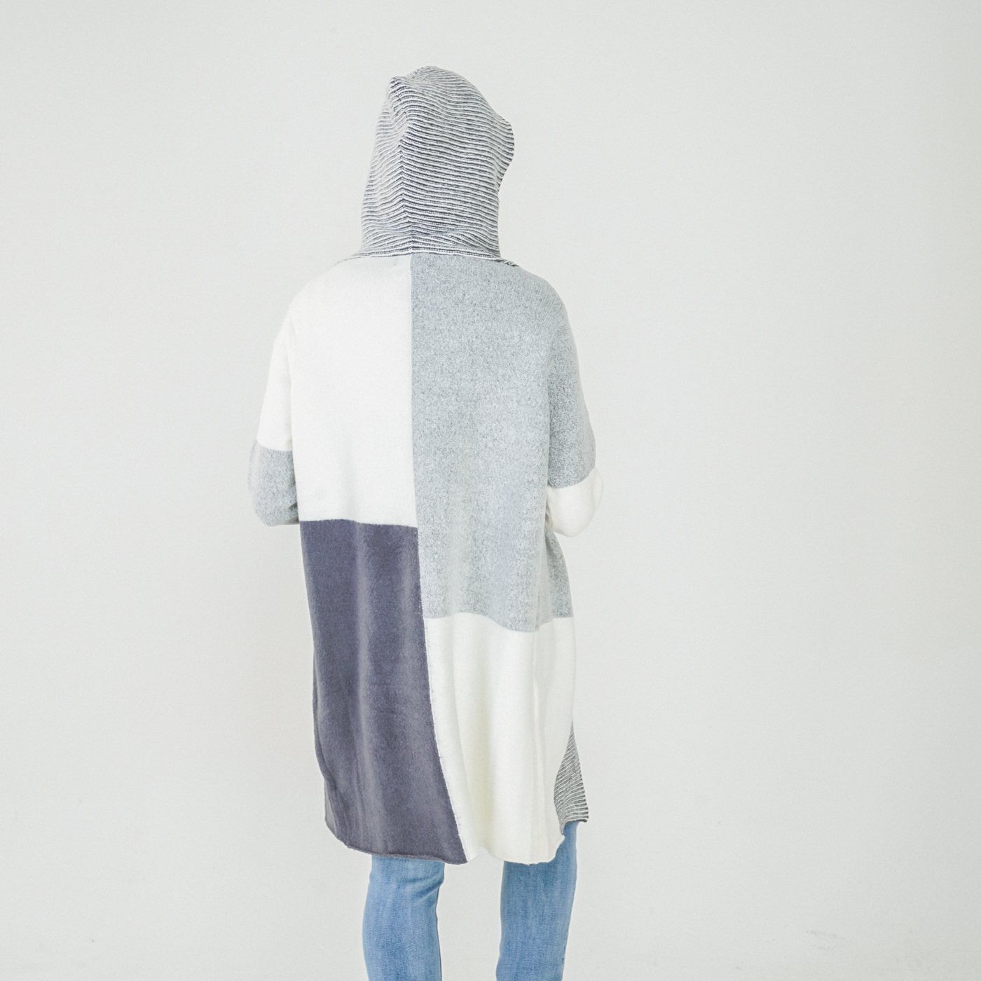 바둑판 패턴 짜임이 시크한 후드 가디건입니다.