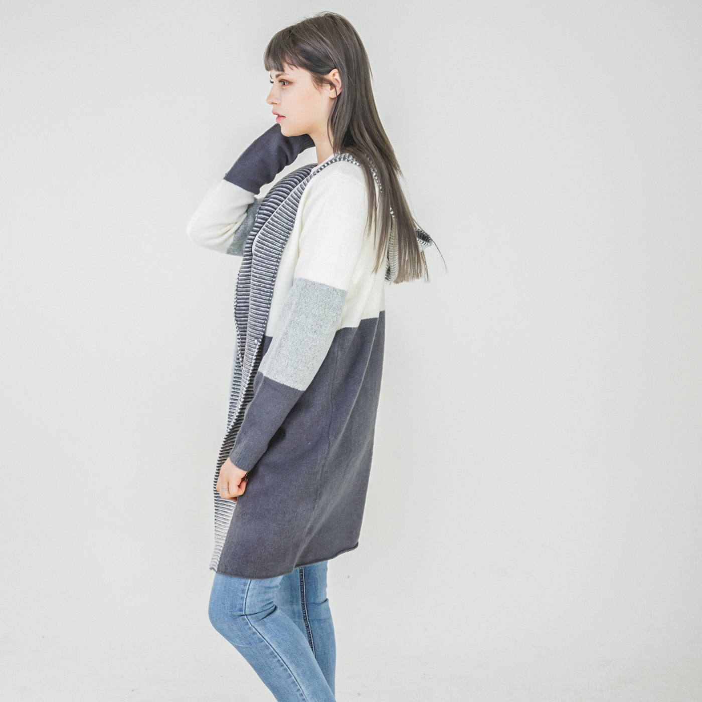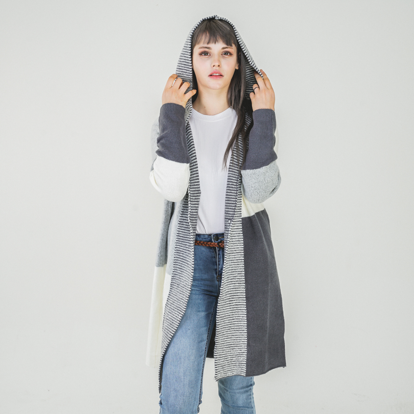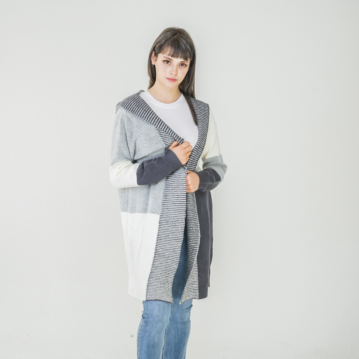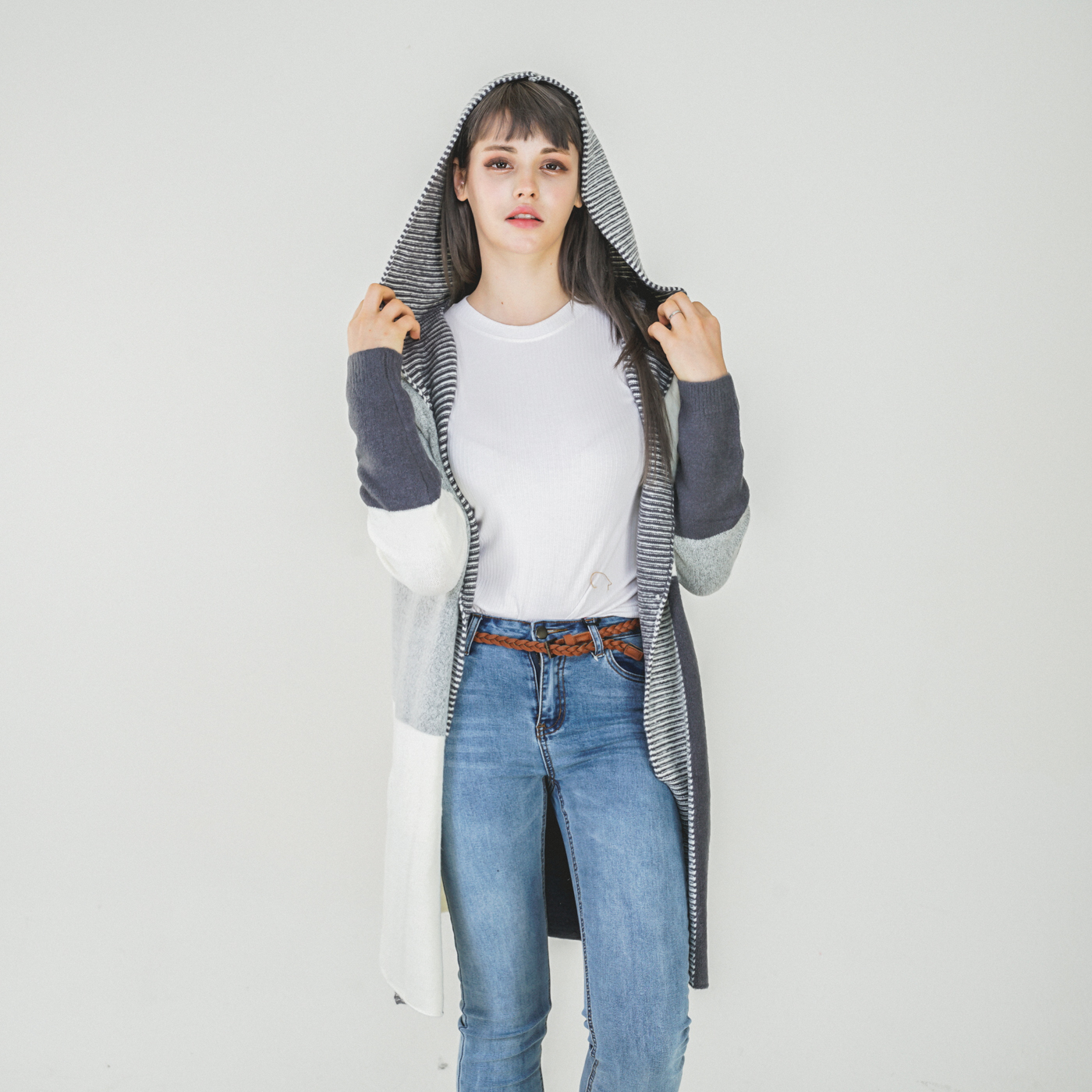 바둑판 패턴 짜임이 시크한 후드 가디건입니다.