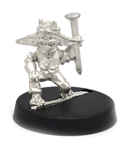 -. Feature : This 16mm tall (12mm from feet to eyes) Gremlin Forgeworker has a great amount of detail for dungeon-crawling, RPGs and table top war games. / Miniature could be used as a miner, as a rail worker, as a mechanist, as a repair crew. This gremlin is equipped with a large nail or spike, workman's clothes, and gloves. / Included with each mini is a slotted round plastic "creator" base. This base is not designed as a plug and play solution and requires some assembly and finishing (glue, putty, or other filler is recommended). Figure is made of 100% lead free pewter. / The pictures of the painted miniatures are for inspiration and are only examples. / Miniatures come unassembled and unpainted, some filing may be needed to clean up excess flashing, or sprue. Choking hazard - Not suitable for Children 10 and under.