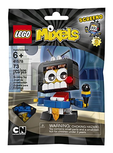 -. Feature : Screeno features a TV head design with an opening mouth, big white teeth, eyebrows, TV-screen glasses, suit and tie and pose able joints, plus a microphone element in hand for extra play / Seek out the top news stories with Screeno of the L.E.G.O MIXELS Newzers tribe / Collect all 3 Newzers in L.E.G.O MIXELS Series 9 to build the MAX / Stands over 3" (8cm) tall / Watch all your favorite MIXELS characters on Cartoon Network