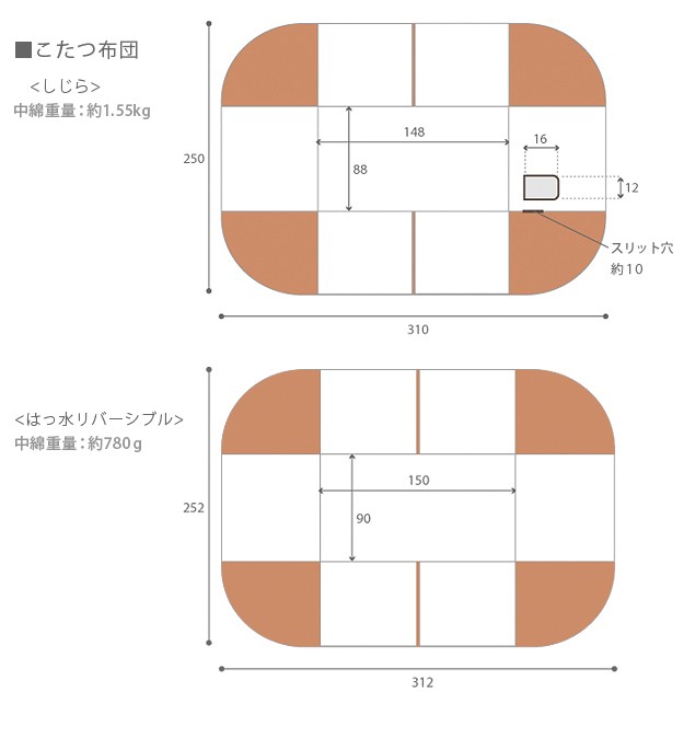 サイズ(cm):こたつ-幅150x奥行90x高さ70(65)・約28.5kg、椅子-幅58x奥行53.5x高さ78(73)・約12kg布団-310x250cm