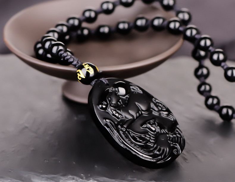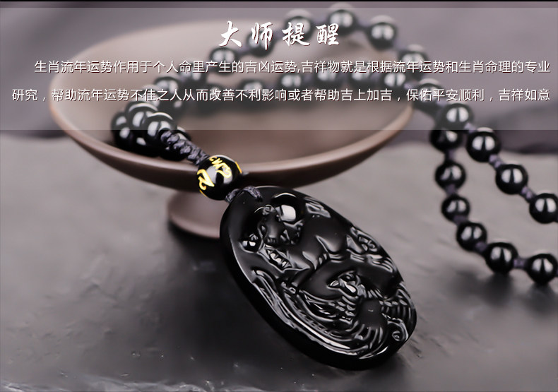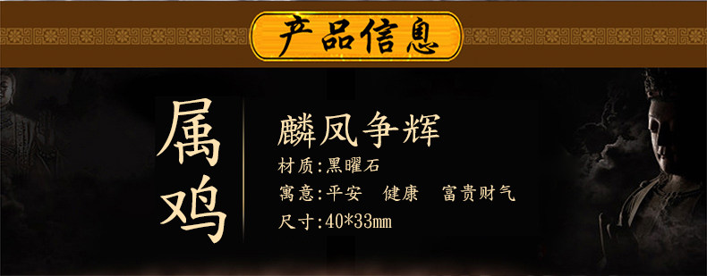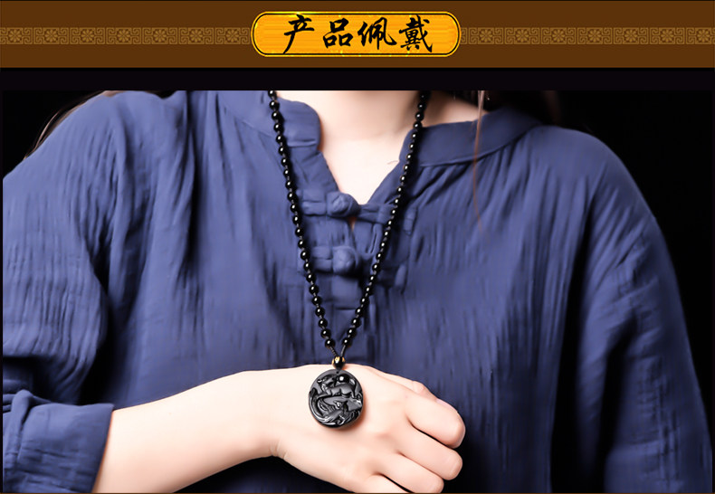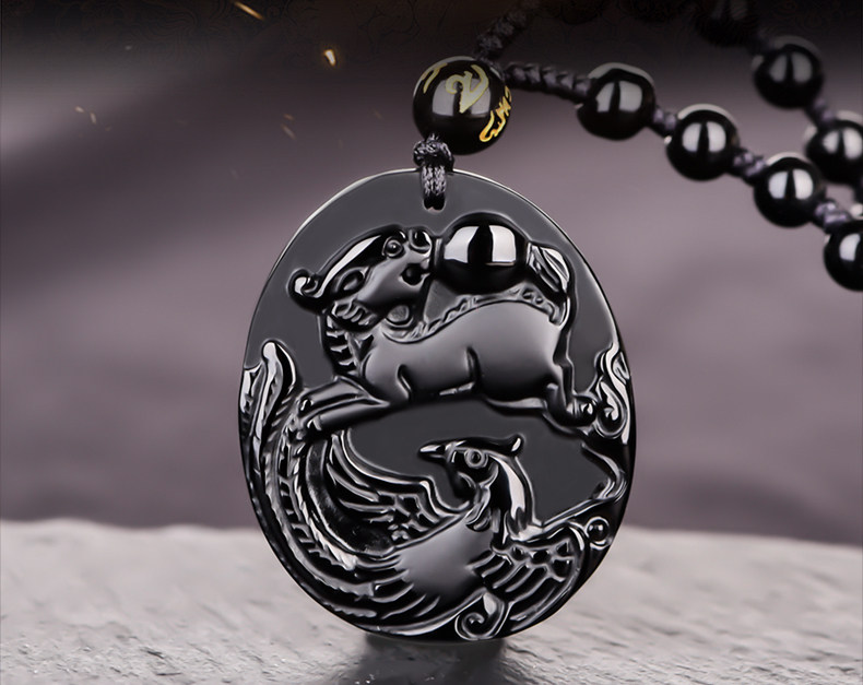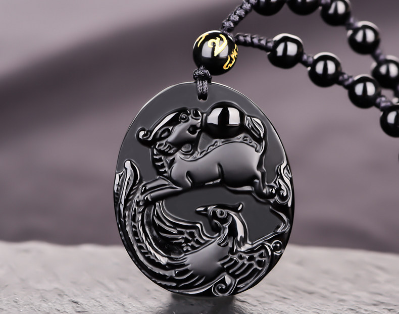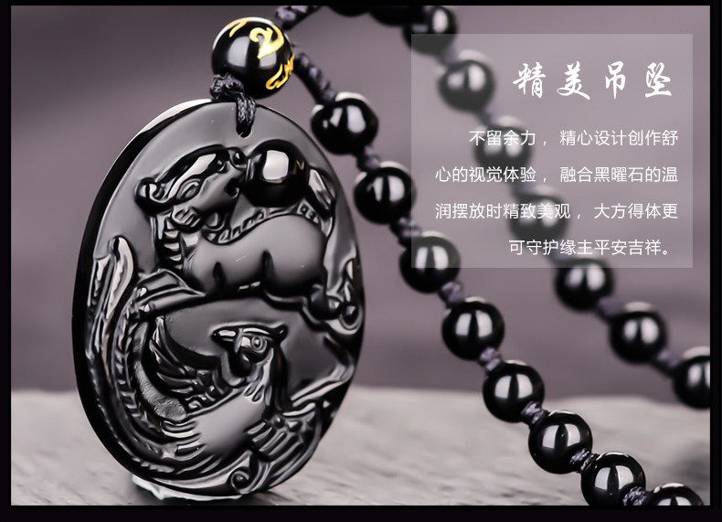 天然黑曜石麟凤争辉吊坠狗年生肖鸡开光开运吉祥物挂件