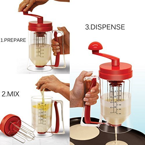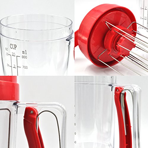 - ►FUNCTION:Improved handle position and wide opening at the bottom will increased durability.Prepare,mix and dispense all in same batter dispenser .