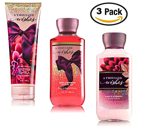 A Thousand Wishes - 3 Piece Bath and Body Works Gift Set - A Thousand Wishes Lotion + A Thousand Wishes Ultra Shea Triple Moisture Cream + A Thousand Wishes Shower Gel
