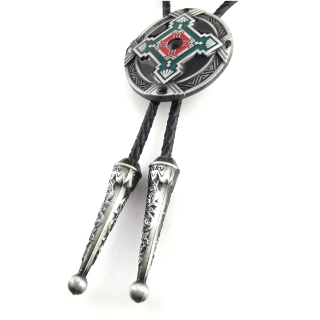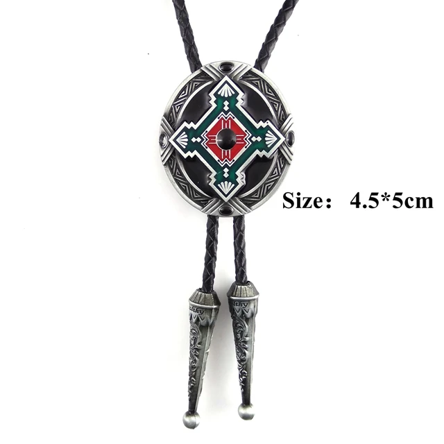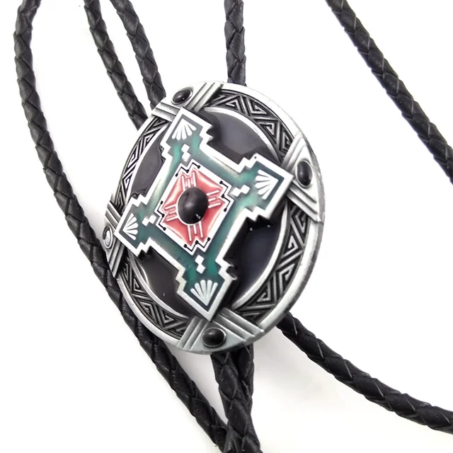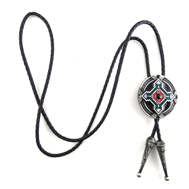 | [해외]남성 목걸이 카우보이 블랙 PU 가죽 볼로 타이 남성 인도 토템 금속 버클 소매 도매 정의 볼로 타이 |