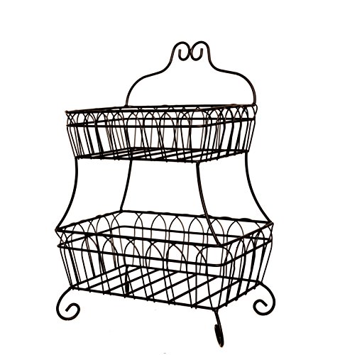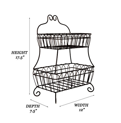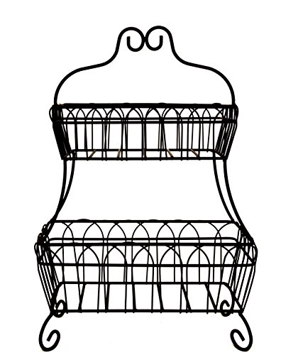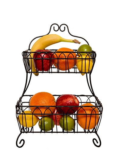 JMiles UH-FB235 Two Tiered Decorative Wire Basket for Fruit, Bread, and More - Decorative Display Basket for Home, Deli, Restaurant, or Office