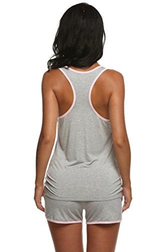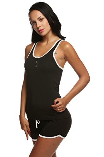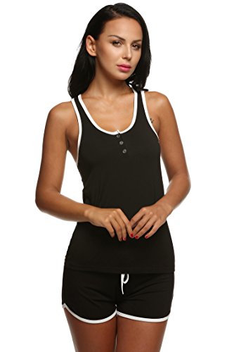 -. Binding : Apparel -. Brand : Ekouaer -. Department : womens -. Feature : Super Soft Fabric: 95% Viscose/5% Elastane. / Two piece pajama sets include sleeveless tank top and short. / Tank top featured front button placket and racerback; Pajama Short with an elastic waistband. / Soft jersey material is lightweight and comfortable, perfect for loungewear and sleepwear / Hand wash. Available in Black and Gray from S to XXL. For viscose cami set, please search "EK004442"; For satin pajama set, please search "EK003429" on Amazon. -. Model : EK003636 -. ProductGroup : Apparel -. ProductTypeName : SLEEPWEAR -. Title : Ekouaer Womens Sleepwear Lightweight Viscose Pajama Sets Tank Top and Shorts (S-XXL)