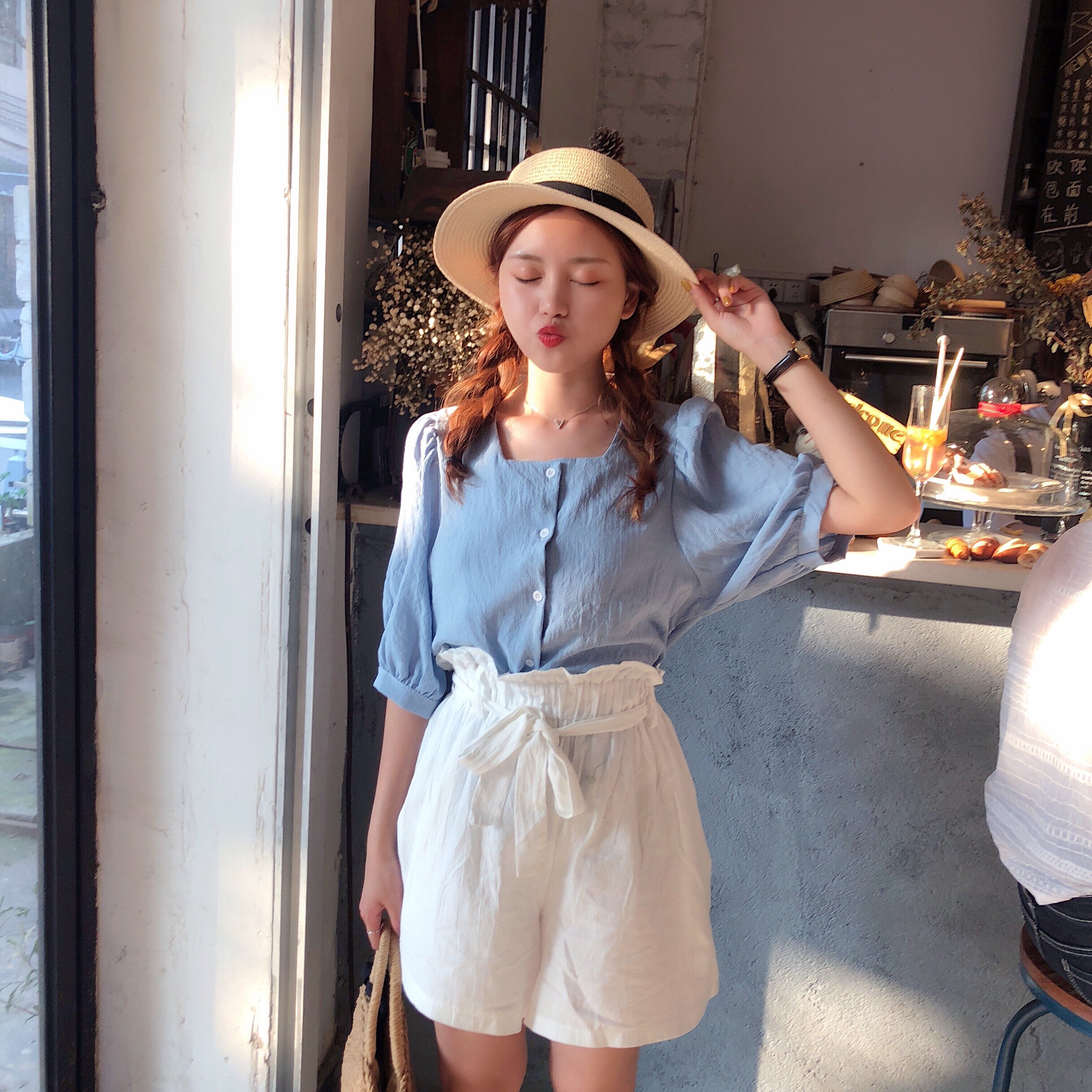 Plaid shirt: length 56 bust 100 shoulder width 32 sleeve length 34