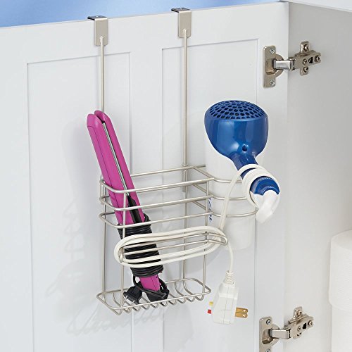 mDesign Over the Cabinet Hair Care Tools Holder for Hair Dryer, Flat Iron, Curling Wand - Satin