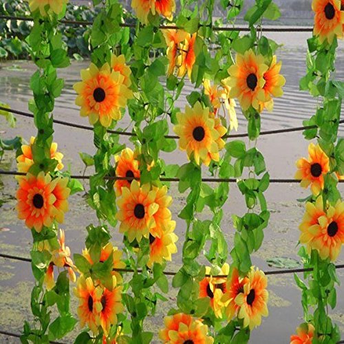 Adsled 10pcs Lot 2.1m Artificial Sun Flower Wicker Rattan Vine Fake Foliage Leaf Flowers Plants Garland Garden Decoration