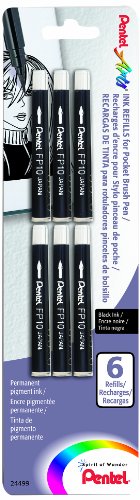 Pentel Arts Pocket Brush Refills, Black Ink, Pack of 6 (FP10BP6A)