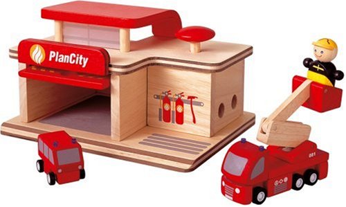 プランシティには欠かせないのが消防署。木の街を守るヒーローです。赤いボタンを押して離すと、ベルの音が鳴ります。緊急事態に備えて日々訓練。いざと言うときには、迅速に出動願います!ハシゴ車もいますから、高いところの人命救助もお任せください。※このセットには消防士の人形と、ハシゴ車を含むクルマ2台が付いています。