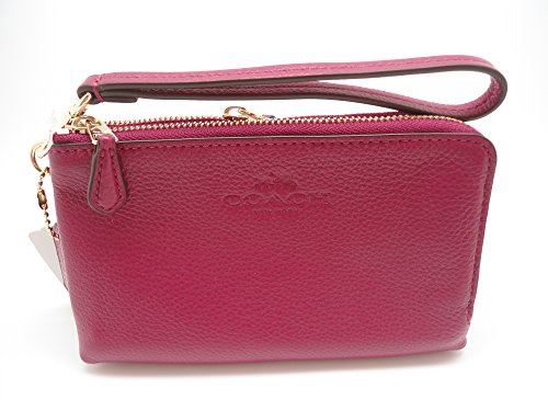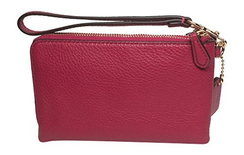 -. Title : Pebble Leather Double Corner Zip Wristlet Cranberry 64130