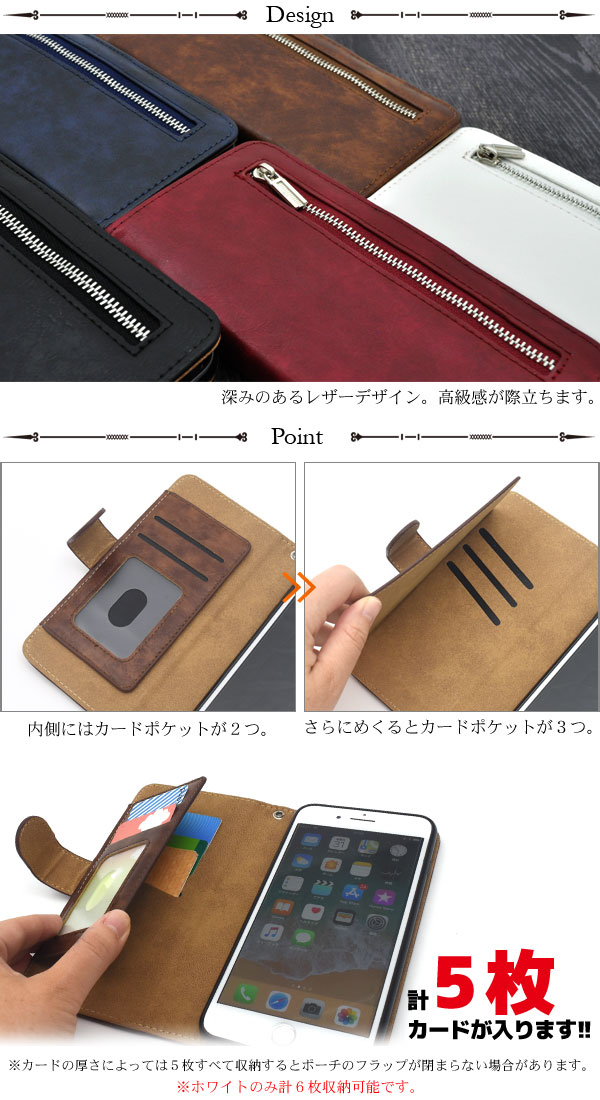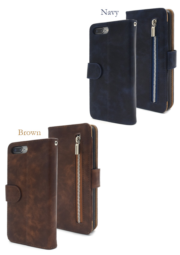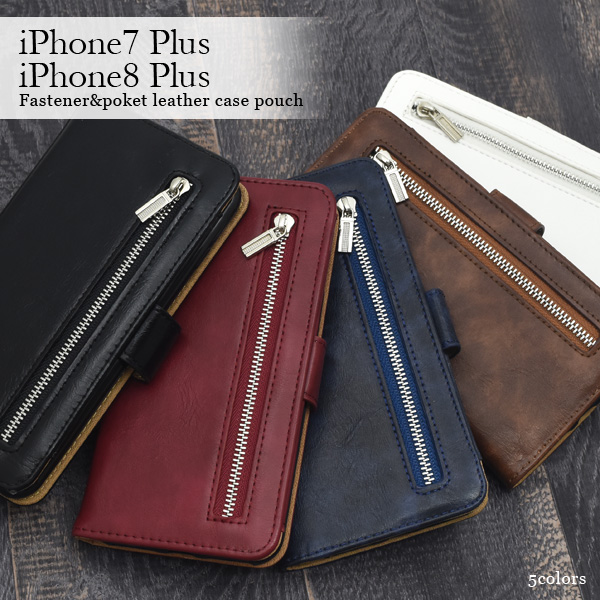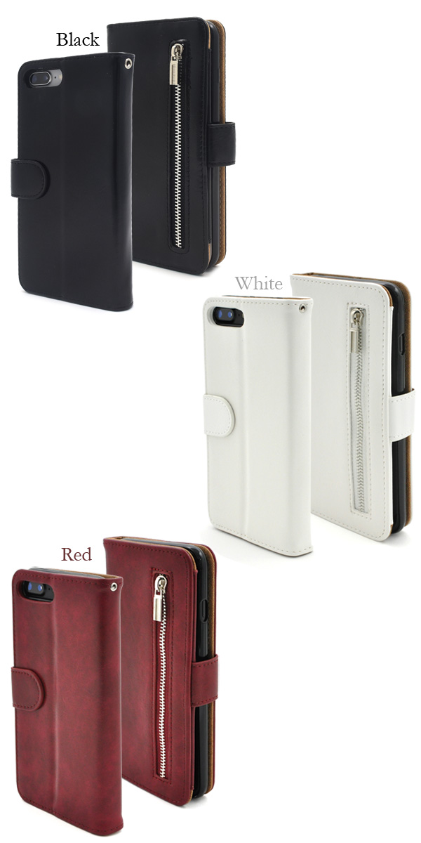 iPhone7 Plus用ファスナー&ポケットレザーケースポーチ
