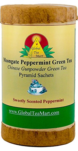 -. Feature : Chinese Gunpowder Green Tea / 15 pyramid sachets yield approximately 15-30 cups / Peppermint flavor / Green tea