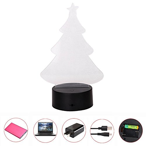 Bidlsbs 3D LED Multicolor Christmas Tree Decorative Night Lights, USB Rechargeable Touch Button Desk Table Night Lighting Lamps for Nursery Kids Room Girls...