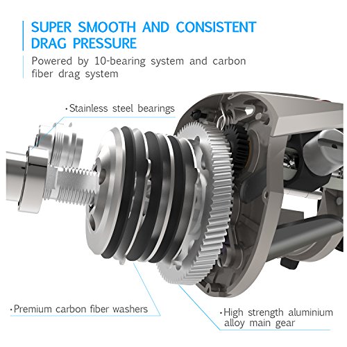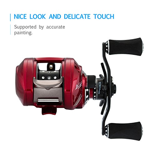 HIGH PRECISION MAGNETIC BREAK SYSTEM- Fully adjustable magnetic brake system gives smooth and consistent brake pressure throughout the cast. Great to avoid the backlashes. You can adjust from 0(none) to 10 (highest) to get the perfect tension according to the weight of lures/bait you use. This allows almost limitless adjustability to handle any fishing situation and makes the cast more accurately.