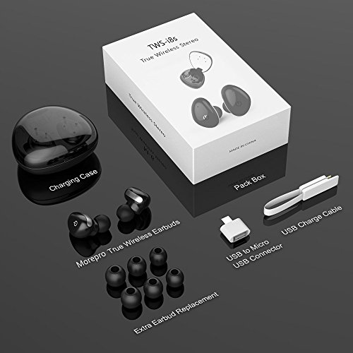 -. Title : True Wireless Bluetooth touch Earbuds,MorePro Waterproof Mini Hifi Stereo Headphone Sport Headset In-Ear with Mic & Charging Box for Smartphone /iOS/ Android/BlackBerry …