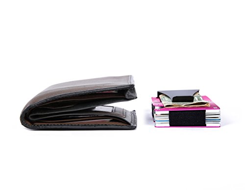 Functional Elastic Band and Humanized Design -- Thanks to the springy elastic bands. This stylish wallet can hold up to 10 cards. Meanwhile, even if there is only 1 card, the card can be held tightly. -- V-shaped mouth makes it easy to put credit cards into it. -- C-shaped mouth helps you push cards out conveniently, then cards can be easily accessed.