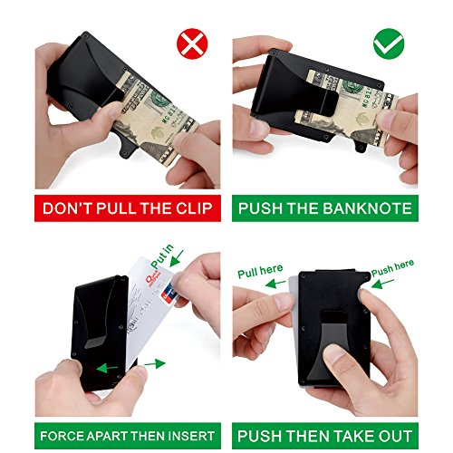 VERY IMPORTANT NOTE: Please do NOT push up the metal clip strongly. Banknotes can be easily inserted / slid underneath the aluminum clip with a little power. 0