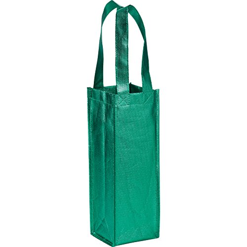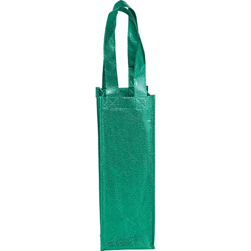 Non Woven Metallic Single Bottle Wine Tote 12"H x 4.15"W x 4.15"Gusset- Holiday Gift bags