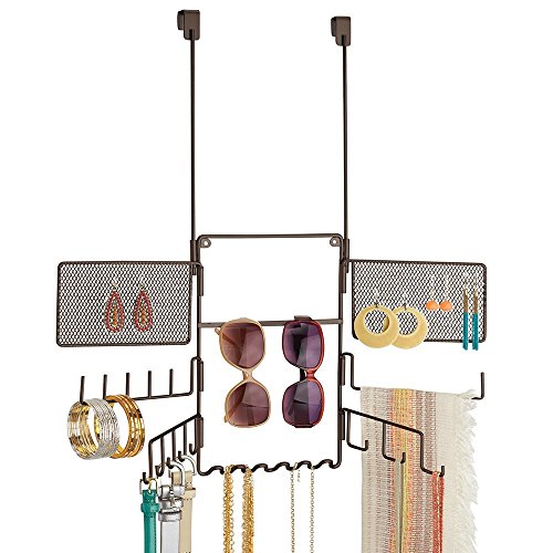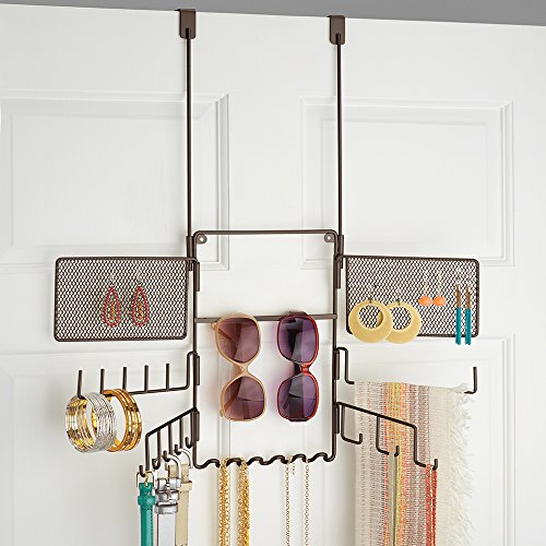 mDesign Hanging Fashion Jewelry and Accessories Organizer for Rings, Earrings, Bracelets, Necklaces, Scarves, Belts - Over Door, 21 Hooks, Bronze