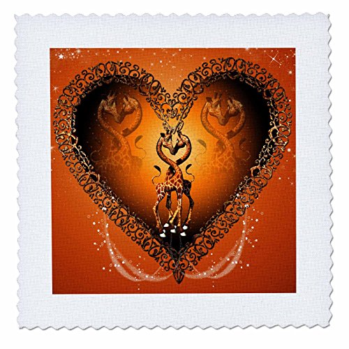 3dRose Cute Giraffes on a Heart with Stars Quilt Square, 6 x 6"