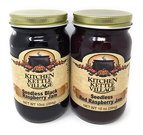 Seedless Black Raspberry and Red Raspberry Jam, Kitchen Kettle Village (Amish Made), 10 Oz. Jars [1 of Each]