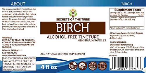 -. Feature : Organic Birch (Betula Pendula) Dried Leaf / Alcohol-FREE Liquid Extract, Tincture Supplement / All Natural Herbal Supplements, GMO FREE, VEGAN, MADE IN USA