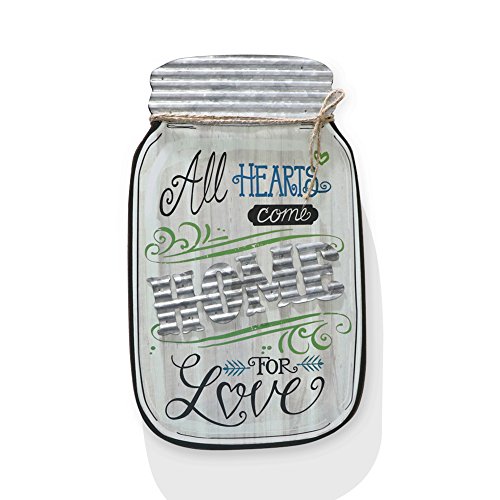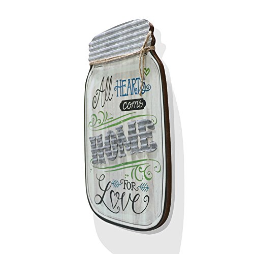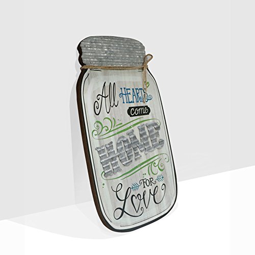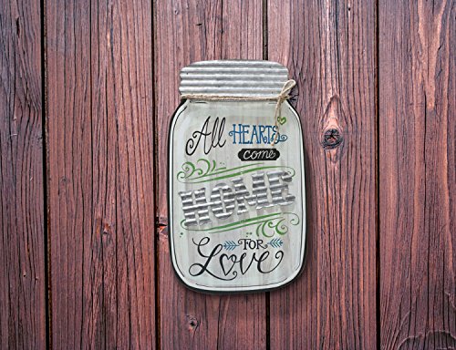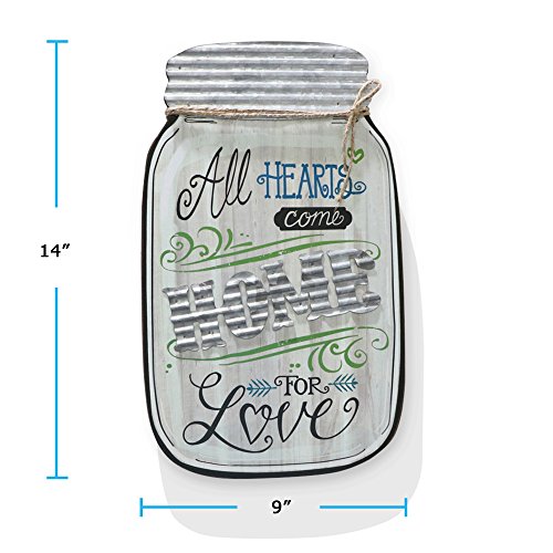 Barnyard Designs Rustic All Hearts Come Home For Love Mason Jar Decorative Wood and Metal Wall Sign Vintage Country Decor 14"x9"