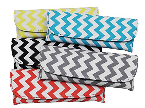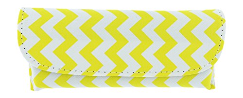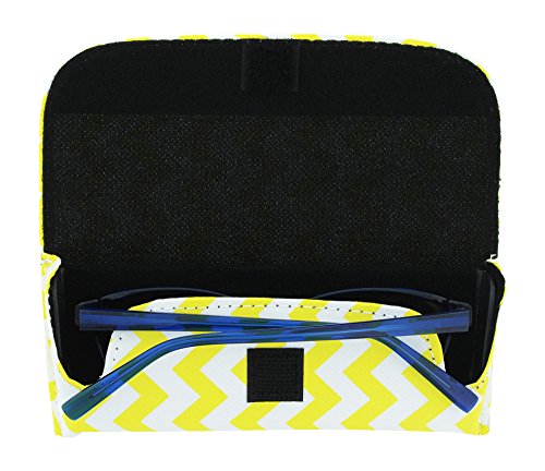 Binding : Apparel Product Description Have some fun with these always sunny, bright and fashionable chevron design semi-hard cases. These quality cases have a front closing flap that is secured closed by Velcro tabs that have been single stitched and glued down for extra staying power. These envelope style chevron design cases come in five colors; black and white, gray and white, teal and white, red and white, and yellow and white.The main pocket of these sunny cases, have a raised notch, approximately a half an inch wide, in the middle so the bridge of your glasses sit comfortably and securely in place. The sides, back, and bottom half of these happy little cases have been fortified with a ridged plastic and and is lined with a nylon fabric to keep your lenses from getting scratched. These jaunty cases measure 6.38 inches long 2.38 inches high and 1.13 inches deep. These pleasing cases will be the perfect gift for anyone who wears small to medium frames. 0
