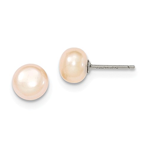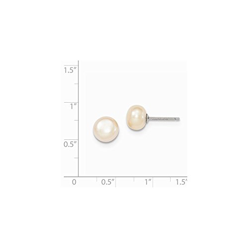 Solid 925 Sterling Silver Peach FW Cultured Pearl 8mm Button Earrings