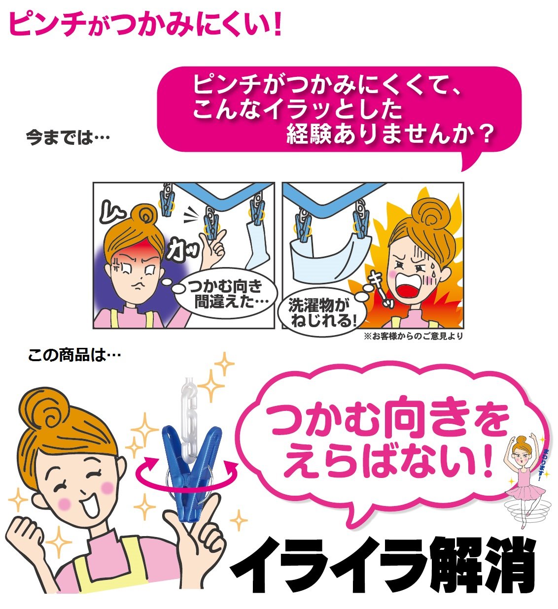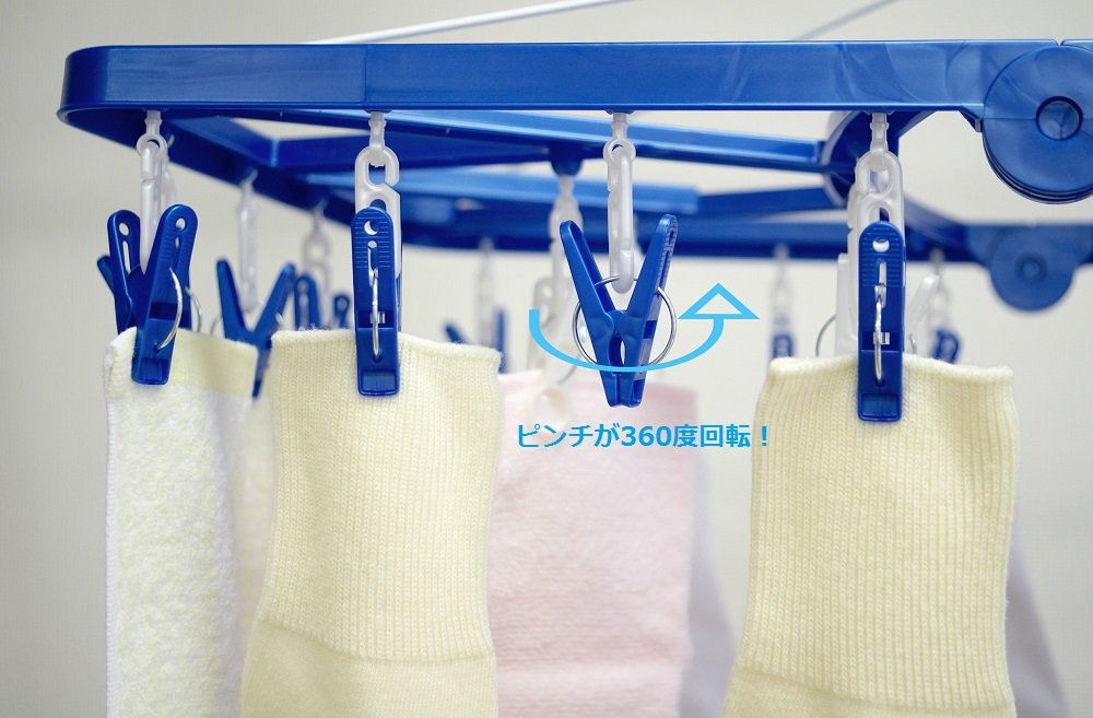 ● Since the pinch rotates freely 360 degrees, it is easy to dry regardless of the direction when hanging the laundry