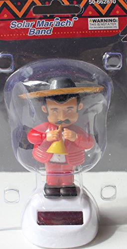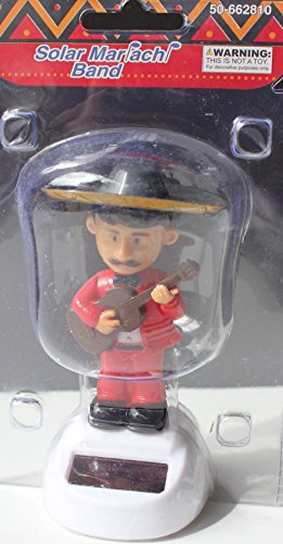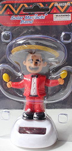 -. Binding : Toy -. Brand : Solar Toys -. Color : Brown -. Department : boys -. EAN : 8764161746932 -. Feature : Solar powered, batteries are not needed / Mariachi Guy, really funny!!! / 3 different designs, we will send 1 of our choice -. IsAdultProduct : 0 -. Label : Solar Toys -. Manufacturer : Solar Toys -. MPN : mariachi band -. PackageQuantity : 3 -. PartNumber : mariachi band -. ProductGroup : Toy -. ProductTypeName : TOYS_AND_GAMES -. Publisher : Solar Toys -. Studio : Solar Toys -. Title : Solar Dancing Mariachi Band Guy 4.5