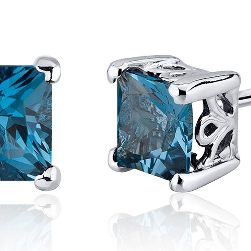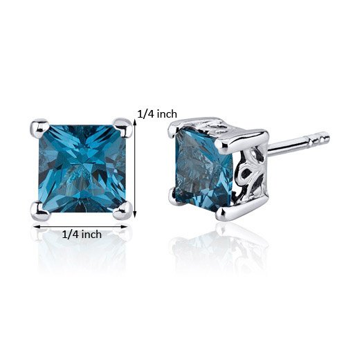 Center Stone: 2 Pieces Genuine London Blue Topaz, Princess Cut 6 mm, 2.50 carats total weight, Caribbean Blue Hue with Brilliant Sparkle. Earrings: 2.50 grams, Pure Sterling Silver with .925 stamp, Earrings feature Stud posts with Bullet backs, exceptional Design, Craftsmanship anding. Perfect gift for Mothers Day, Birthdays, Valentines Day, Graduation, Christmas or just about any other occasion. Money Back Guarantee. Includes a Signature Gift Box & style SE8022Feature