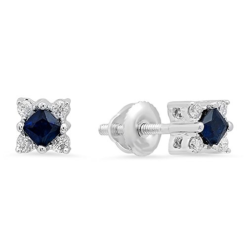 This lovely diamond stud earrings feature blue sapphire & white diamonds in prong setting. All diamonds are sparkling and 100% natural. All our products with FREE gift box and 100% Satisfaction guarantee. Blue Sapphire is very dark blue in color - Color varies from photo. SKU # K4172-14KWFeature