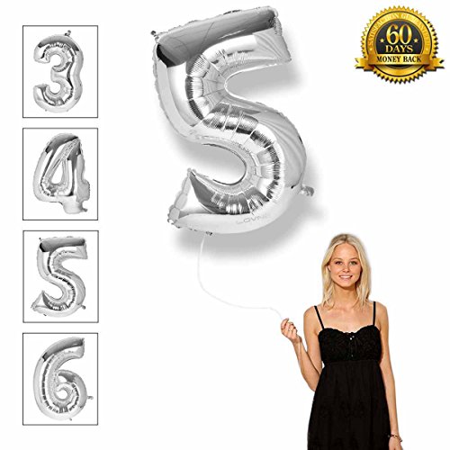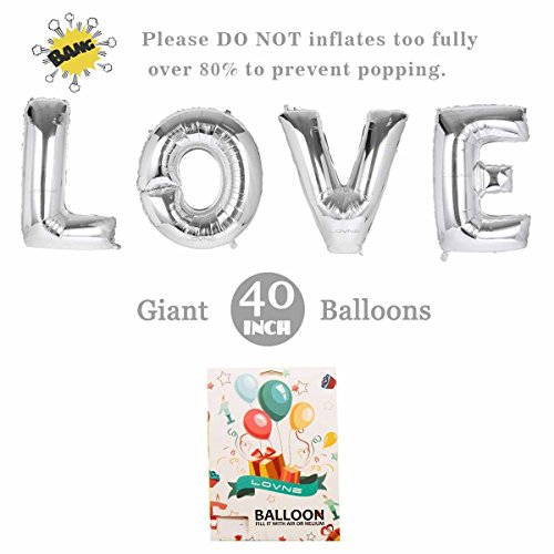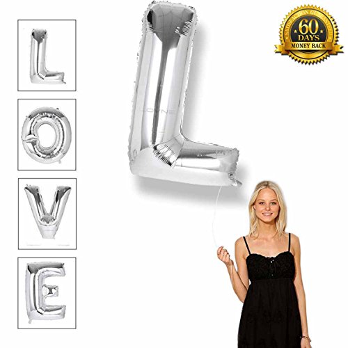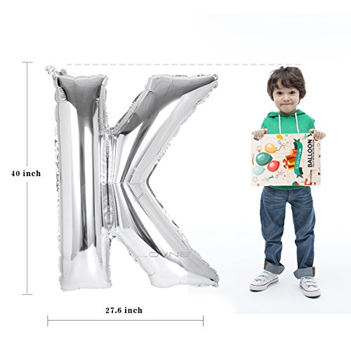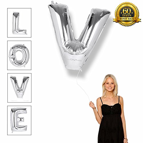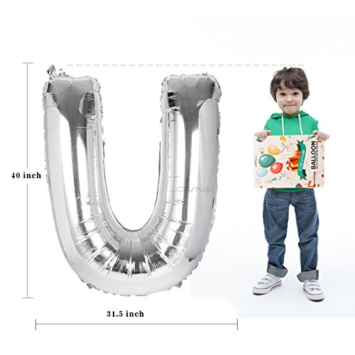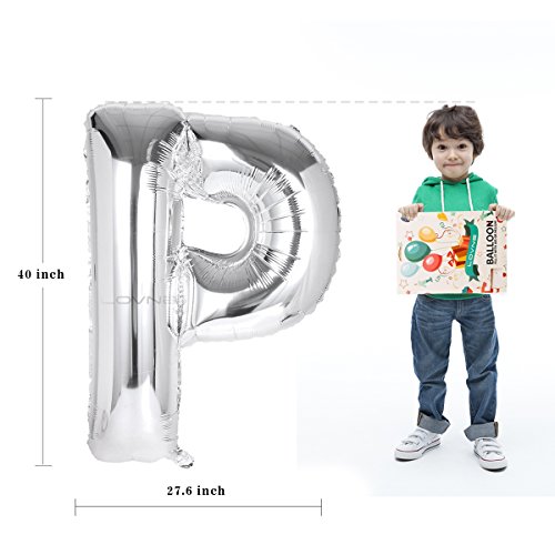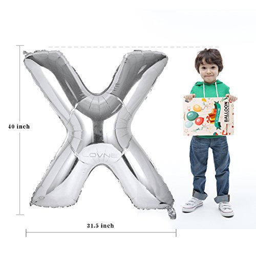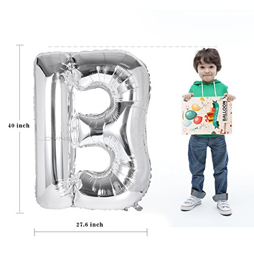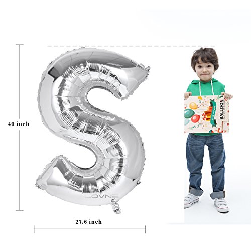 Lovne 40 Zoll Silber Alphabet A-Z Ballon Nummer 0-9 Luftballons Geburtstagsfeier Dekorationen Helium Folie Mylar Buchstaben Ballon