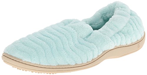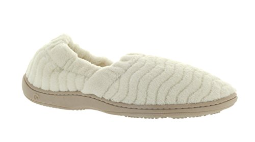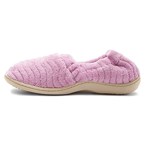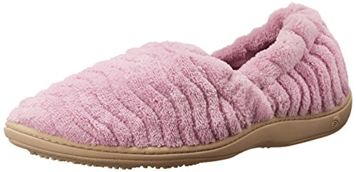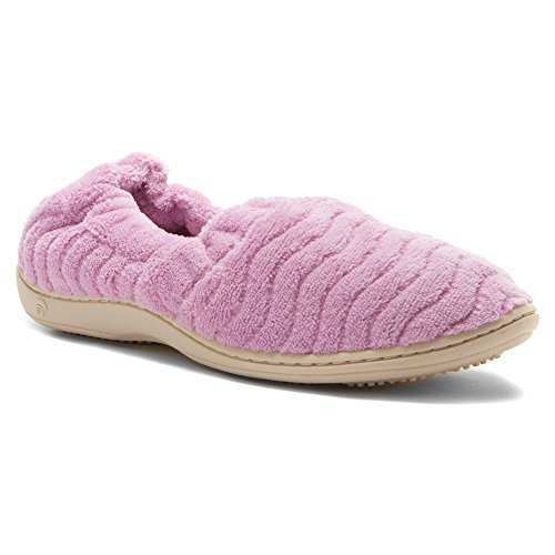 Soft spa terry uppers and linings wrap the foot in comfort. Elastic top band for a secure fit. FirmCore footbed with Dual Density technology delivers firm support at arch and softer cushion at strike zones. Skid-resistant TPR rubber sole. Material: Terry, Rubber.Feature
