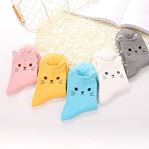 -. Title : Pack of 5 Women Girls Fun Cats Cartoon Sweet Animal Pattern Cotton Crew Floor Socks