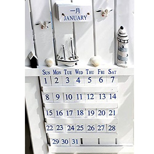 -. Title : 【 おしゃれ デザイン 】木 製 万年 カレンダー 44cm × 30cm 壁 掛け 立て掛け 型 アンティーク 海 の 家 インテリア エクステリア プレゼント 【COM-SHOT】 MI-MARIKARE