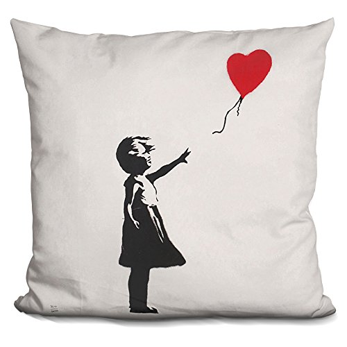 LiLiPi Girl with Baloon (White) Decorative Accent Throw Pillow
