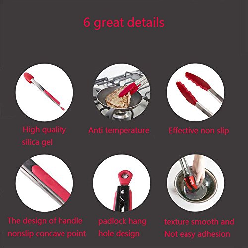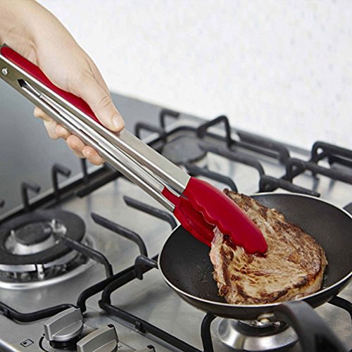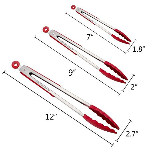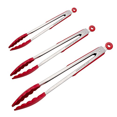 Stainless Steel Silicone Kitchen Tongs,Set of 3 - 7, 9, 12 Inch Heavy Duty ,KEKU Non-stickTongs for Barbeque, Cooking, Grilling Turner - A Serving and Feeding Set for Your Kitchen Collection,RED