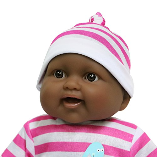 Now You Can Have Twice The Fun & Double The Love! Introducing ‘Lots to Cuddle Babies' African American twin dolls by JC toys, designed by Berenguer. These two adorably cute huggable baby dolls come dressed in sweet matching outfits and coordinated colors. One of the first things you will notice when you see these two baby dolls in person is their happy and expressive faces. Imagine: all the joy in the world looking back at you! The ‘Lots to Cuddle Babies' African American twin dolls have a life-like appearance made possible only by a specially hand-crafted design. The superior quality from our award-winning designers means you get only the highest quality sculpted head, arms, and legs. Every detail looks just like real life baby twins. Made for children ages 2 and up, ‘Lots to Cuddle Babies' twin dolls are safe and fun. There are no moving parts. The vinyl sculpting connects seamlessly to a plush and huggable body. You'll love their twinkling and life-like brown eyes that are set open in place above adorably squeezable cheeks. Clothes are easily removed with a Velcro strip on each doll's washable one piece outfit and matching caps. JC Toys is a family run business with origins dating back to 1982 in south-east Spain - one of the top major toy-making and design centers in the world. Today, you can find 100s of dolls, playtime accessories, and more by JC Toys. Get twice the fun and double the love today by adding ‘Lots To Cuddle Babies' twin dolls to your cart now - thank you!.Feature