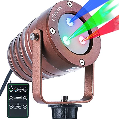 • RGB ALL COLOR OPTIONS: Cheriee outdoor Laser Christmas Lights with single Green, Red, Blue displays, or combinations of two or three colors of your choice(Red & Green, Red & Blue, Red & Blue & Green). The pattern of this Christmas Lights Projector can be set to Flashing, Rotates, or simply Static. Also the Flash and Rotates Speed can be adjusted using remote control(Slow, Medium, Fast or Static). Blinking star laser lights shine thousands of shimmering Moving Star String lights onto houses, la