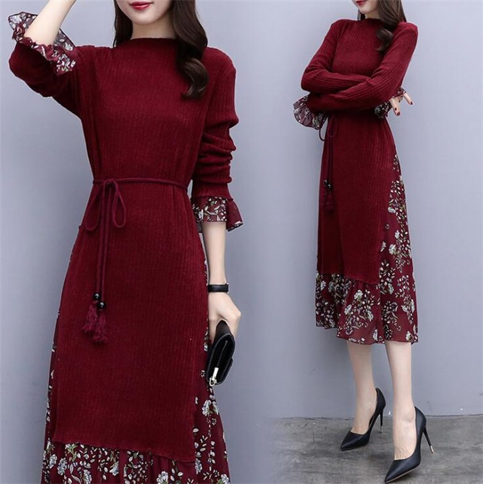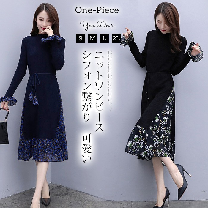 【キーワード】ニットワンピース ロングワンピース ニット レディース 長袖 シフォン繋がり ワンピース 秋 冬 ロング丈ワンピース 体型カバー 大きいサイズ ゆったり ワンピース ベルト付き キレイめ 秋ワンピース 冬ワンピース ブラック 紺色 ネイビー ワインレッド ワンピース ロングニットワンピース お洒落 ママワンピース ニットワンピ 着痩せ 20代 30代 40代 50代 60代 ファション【生産地】:中国【素材】:ニット・シフォン【カラー】:黒 紺色 ワインレッド※お客様ご使用のPC環境により商品画像のカラーが多少異なる場合があります。仕入時期により多少デザインなど異なる場合があります。ご了承ください。【サイズ(単位cm)】S:バスト82 肩幅34 袖丈60 総丈100M:バスト84 肩幅35 袖丈61 総丈101L:バスト86 肩幅36 袖丈62 総丈102XL:バスト88 肩幅36 袖丈63 総丈103※サイズは人の手によって測っているため、実寸は商品によって(2-3 cm前後)に誤差が生じる場合がございますので、予めご了承くださいませ。